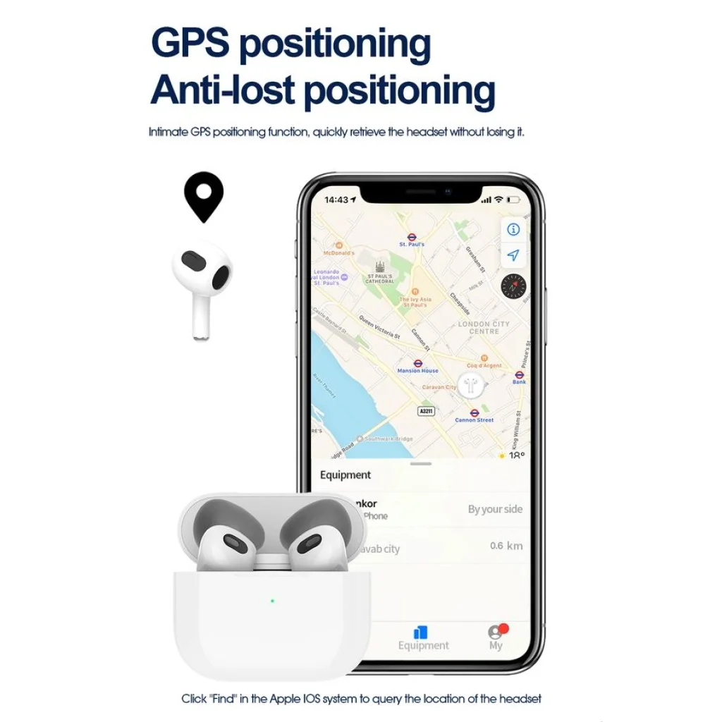 - GPS helymeghatározás (Anti-lost funkció): Soha többé ne veszítsd el a fülhallgatódat! Az integrált GPS pozicionáló funkció lehetővé teszi, hogy az Apple iOS rendszerben a "Find" (keresés) funkcióval gyorsan megkeresd az elveszett headsetet.