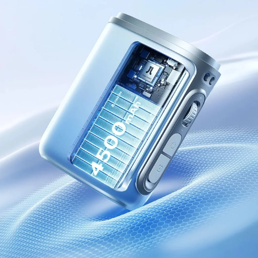 Nagy kapacitású akkumulátor hosszabb működési időt biztosít: A 4500 mAh akkumulátor hosszú működési időt biztosít, így a készülék egész nap használható. Kompakt kialakítás megkönnyíti a hordozhatóságot: Kis mérete és alacsony súlya miatt a ventilátor kényelmesen magával vihető bármilyen utazásra.