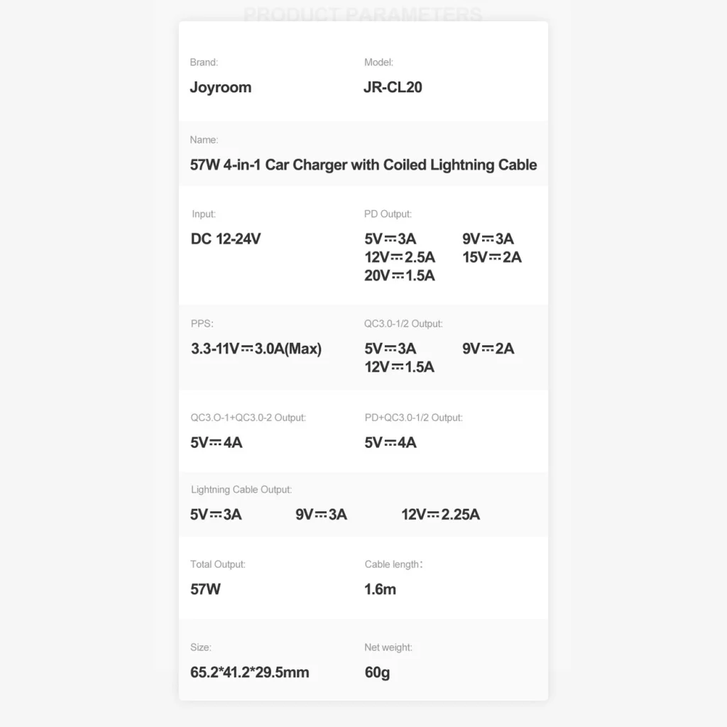 A szivargyújtó csatlakozóhoz való Joyroom autós töltő egy alapvető kütyü, amely manapság minden autó nélkülözhetetlen kelléke. A sofőröknek, és még inkább azoknak a szakembereknek, akik sok időt töltenek az autóban, fel kell tudni tölteni a telefon akkumulátorát, függetlenül attól, hogy éppen hol tartózkodnak. Ezért nagyon fontos, hogy jó minőségű töltő legyen az autóban. Ez a töltő tökéletes választás, mert teljesítménye eléri az 57W-ot! Ez lehetővé teszi a telefonok és más elektronikus eszközök nagyon hatékony töltését. 2 USB porttal, 1 USB Type C-vel és egy beépített 1,6 m-es Lightning kábellel rendelkezik. Egyszerre 4 eszköz töltésére használható.