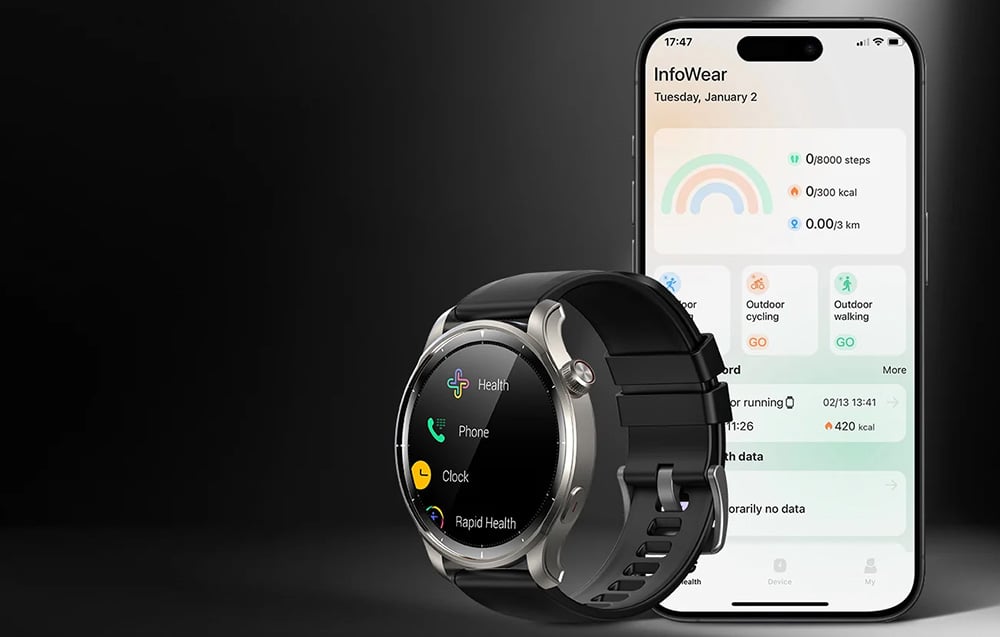 Az okosóra 1,43 hüvelykes AMOLED kijelzővel rendelkezik, amely 466 x 466 pixeles felbontást kínál. Ez rendkívül éles és részletes képet biztosít a felhasználóknak. Az AMOLED képernyő mély feketéket és élénk színeket nyújt, így bármilyen információ vagy grafikai elem jól látható napfényben is. Ezenkívül a kijelző magas fényereje (326 ppi) biztosítja az olvashatóságot különböző fényviszonyok között.