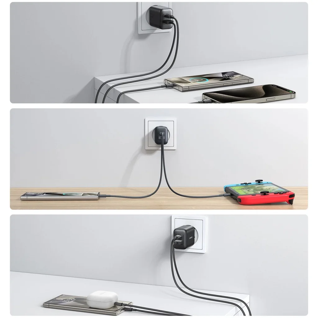 - Két eszköz egyidejű töltése, időt takarítva meg. USB-C és USB-A porttal rendelkezik, összesen maximum 25W teljesítménnyel.