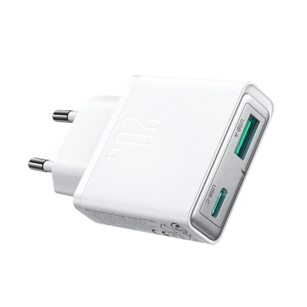 A Joyroom JR-TCF14 töltő egy ultravékony, de rendkívül hatékony 20W-os töltő, amely lehetővé teszi, hogy gyorsan és hatékonyan töltse eszközeit. Kompakt méretének köszönhetően 64%-kal vékonyabb, mint a hagyományos 20W-os töltők, ezáltal ideális megoldás utazáshoz, munkához vagy mindennapi használatra. A töltő támogatja a PD és QC3.0 protokollokat, így rendkívül gyors töltést biztosít két eszköz egyidejű töltéséhez. Ennek köszönhetően időt takaríthat meg az iPhone vagy Samsung készülékek akár négyszer gyorsabb töltésével a hagyományos töltőkhöz képest. Ezen felül a JR-TCF14 töltő 6 pontos biztonsági rendszerrel van felszerelve, amely teljes biztonságot nyújt a használat során. Válassza a Joyroom JR-TCF14-et és tapasztalja meg, milyen gyorsan és biztonságosan töltheti eszközeit!