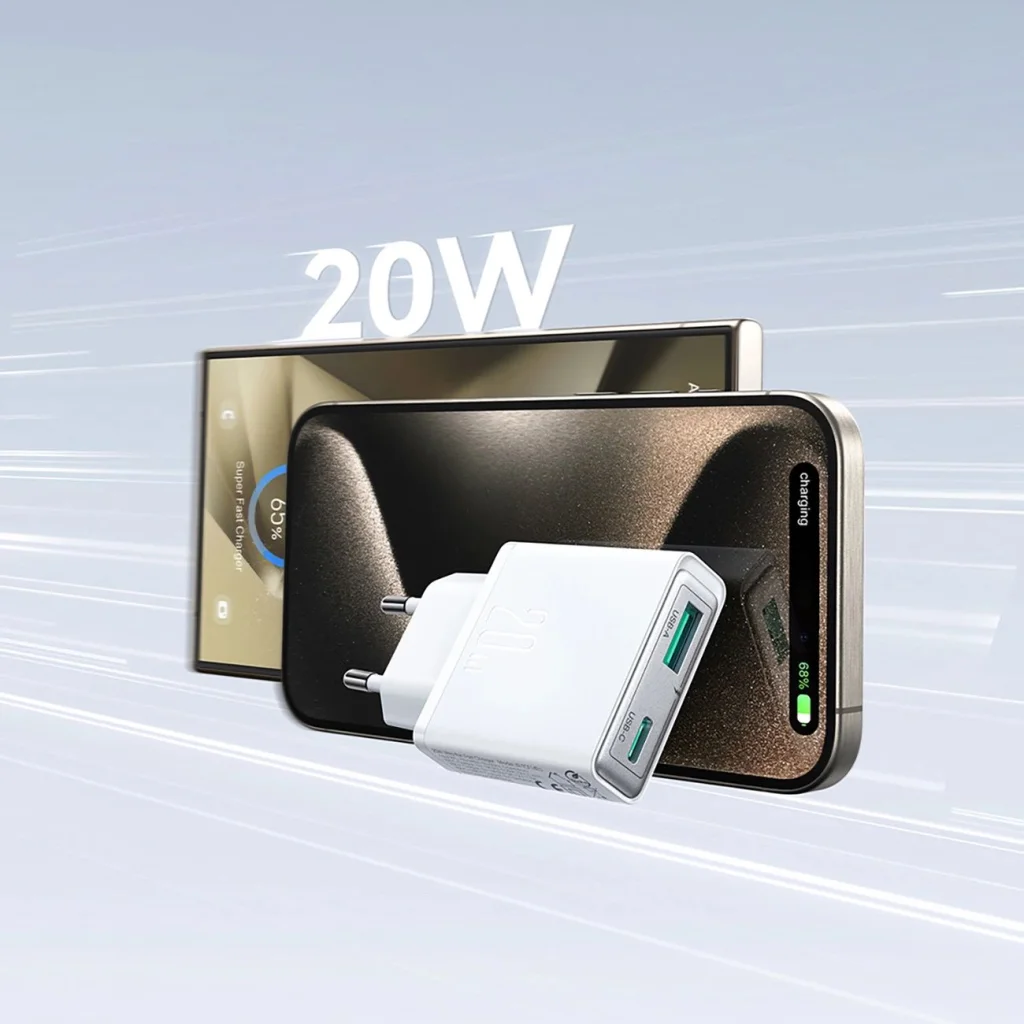 - Szuper vékony kialakítás: A töltő akár 64%-kal vékonyabb, mint a hagyományos 20W-os töltők, rendkívül praktikus és kényelmes a mindennapi használatban.