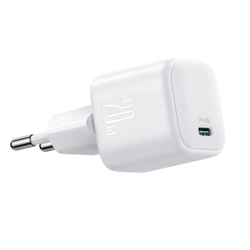 - Kompakt méret: A töltő 35%-kal kisebb, mint a hagyományos 20W-os töltők, így rendkívül praktikus és könnyen tárolható.