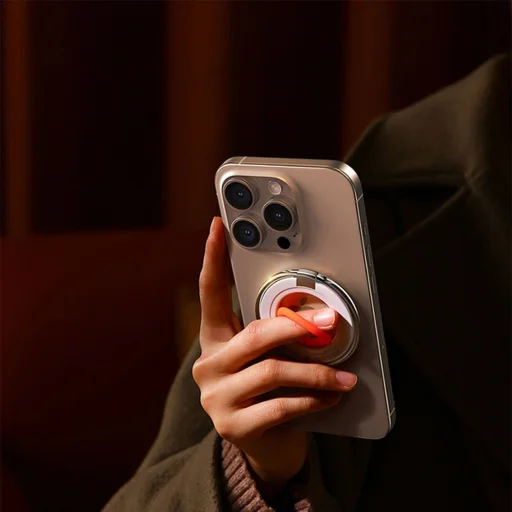 Biztonság: Erős mágnesek tartják a telefont stabil helyzetben. A szilikon ujjmarkolat biztosítja, hogy a telefon soha ne essen ki a kezedből.