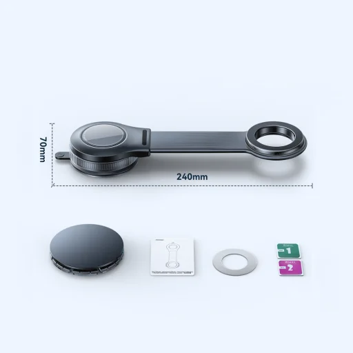 A hajlítható kar lehetővé teszi a telefon pontos pozicionálását. A kialakítás lehetővé teszi az eszköz pozíciójának szabad beállítását - mind függőlegesen, mind vízszintesen. A mágneses rögzítés növeli a stabilitást. Erős mágnesek stabilan tartják a telefont, még egyenetlen úton vezetve is. A gél tapadókorong biztosítja a biztonságos rögzítést. A nagy tapadókorong felület jól tapad különféle felületeken és gyors telepítést tesz lehetővé. A szögbeállítás javítja a használat kényelmét. A képernyő megfelelő szögbe állításának lehetősége megkönnyíti a navigáció és alkalmazások használatát. A masszív felépítés növeli a fogantyú tartósságát. A fém elemek megerősítik az egész szerkezetet és biztosítják a stabil működést mindennapi használatra.