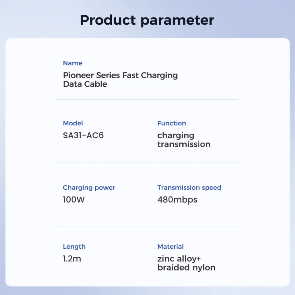 A biztonság és hatékonyság a Joyroom prioritásai. A Pioneer Series kábel intelligens chippel van felszerelve, amely biztonságos töltést garantál kevesebb hővel. Most teljes töltési teljesítményt használhatsz eszközöd károsodásának aggodalma nélkül.