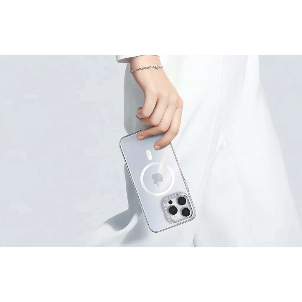 Vigyél egy kis eleganciát az életedbe a Joyroom segítségével. A Glacier sorozat mágneses tokját magasfényű kristályok különböztetik meg, amelyek precízen vannak elhelyezve a telefon lencséjénél. Magas minőségű anyagokat használtak a készítése során, amelyek biztosítják az ellenállást a használat nyomai ellen, így az iPhone 15 Pro mindig esztétikus megjelenésű marad. Ezenkívül a beépített mágneses gyűrű lehetővé teszi a MagSafe kiegészítők kényelmes használatát.