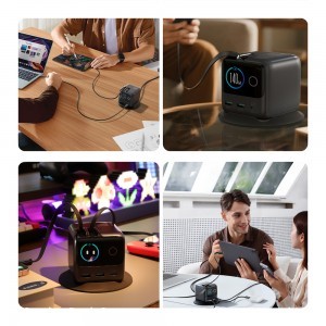 • Beépített, automatikusan visszahúzható USB-C kábelek: Két darab 80 cm hosszú, beépített USB-C kábel segít rendben tartani az asztalodat, megszabadítva a kusza kábelrengetegtől. Egyszerűen húzd ki őket, amikor szükséged van rájuk, és hagyd, hogy simán visszahúzódjanak a helyükre, amikor végeztél a töltéssel. Ez a praktikus megoldás gyors és kényelmes csatlakozást biztosít, miközben minimalizálja a zsúfoltságot.