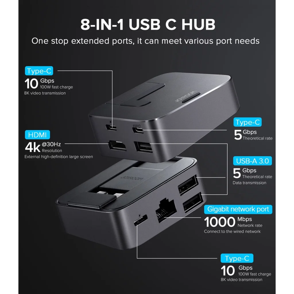 A Joyroom S-H121 J-Cube nem csupán egy dokkoló állomás, hanem egy innovatív, 8 az 1-ben kiegészítő, amelyet kifejezetten a MacBook Pro felhasználók igényeire szabtak. A modern, space gray színű, elegáns J-Cube dizájn nemcsak esztétikus, hanem rendkívül funkcionális is: okosan megemeli a laptop hátulját, optimalizálva a légáramlást és jelentősen javítva a gép hűtését. Ezzel egyidejűleg 8 különböző porttal bővíti laptopja csatlakoztatási lehetőségeit, maximális kényelmet és hatékonyságot biztosítva a mindennapi munkában és szórakozásban. A J-Cube dizájn 2021-ben elnyerte a rangos Red Dot Design Award díjat, amely a kiváló formatervezés és funkcionalitás elismerése.