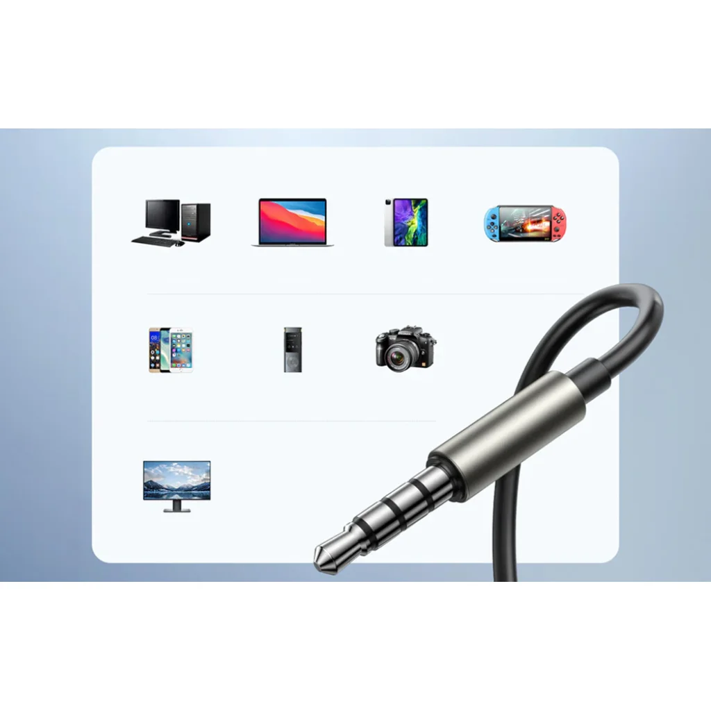 - Széles kompatibilitást és stabil audio átvitel biztosít. A nikkel bevonatú 3,5 mm-es csatlakozónak köszönhetően.