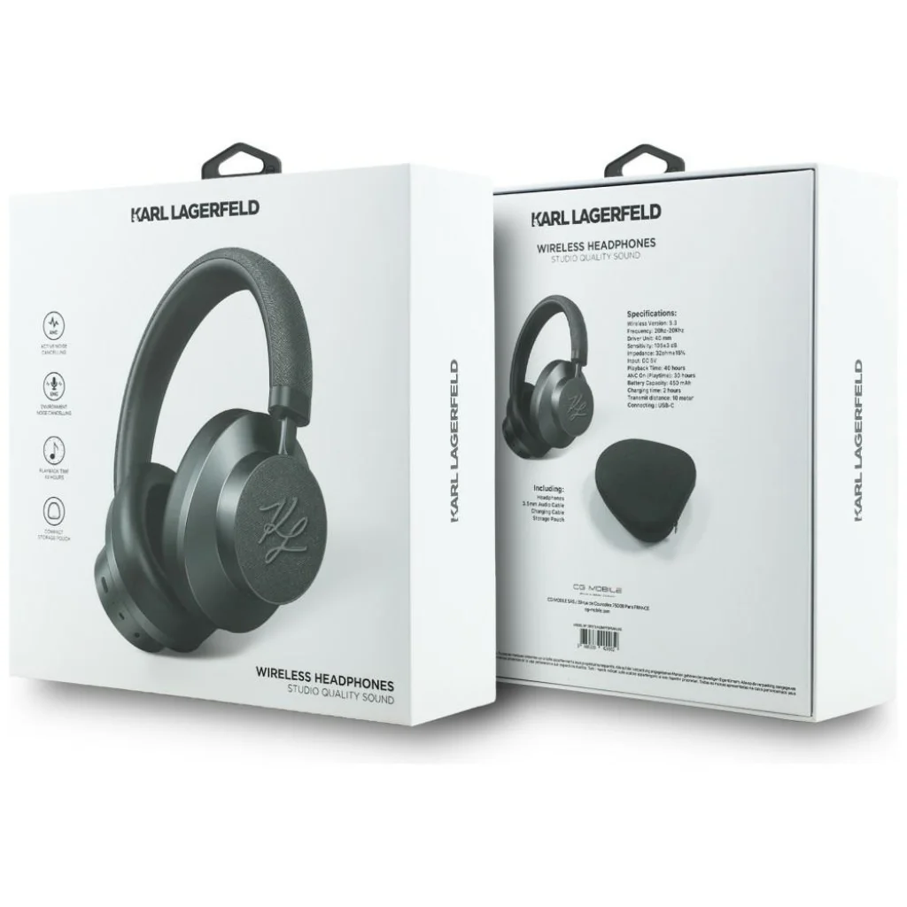 A fejhallgatók a Karl Lagerfeld védjegyszerű esztétikájával – minimalistán, modernül és elegánsan – készültek. A matt felület luxus Saffiano bőrrel párosul a külső fülkagyló paneleken és a fejpánton, ami exkluzív és időtlen karaktert kölcsönöz nekik. A finom fémlogó növeli a termék divatmúltját és presztízsét. A Bluetooth 5.3 biztosítja a gyors és stabil vezeték nélküli kapcsolatot akár 10 méteres távolságig. A beépített 450mAh akkumulátor akár 40 óra folyamatos lejátszást biztosít, és az USB-C portnak köszönhetően a készülék mindössze 2 óra alatt teljesen feltöltődik. A puha, ergonomikus fülpárnák és az állítható fejpánt kényelmet biztosítanak még hosszas használat során is.