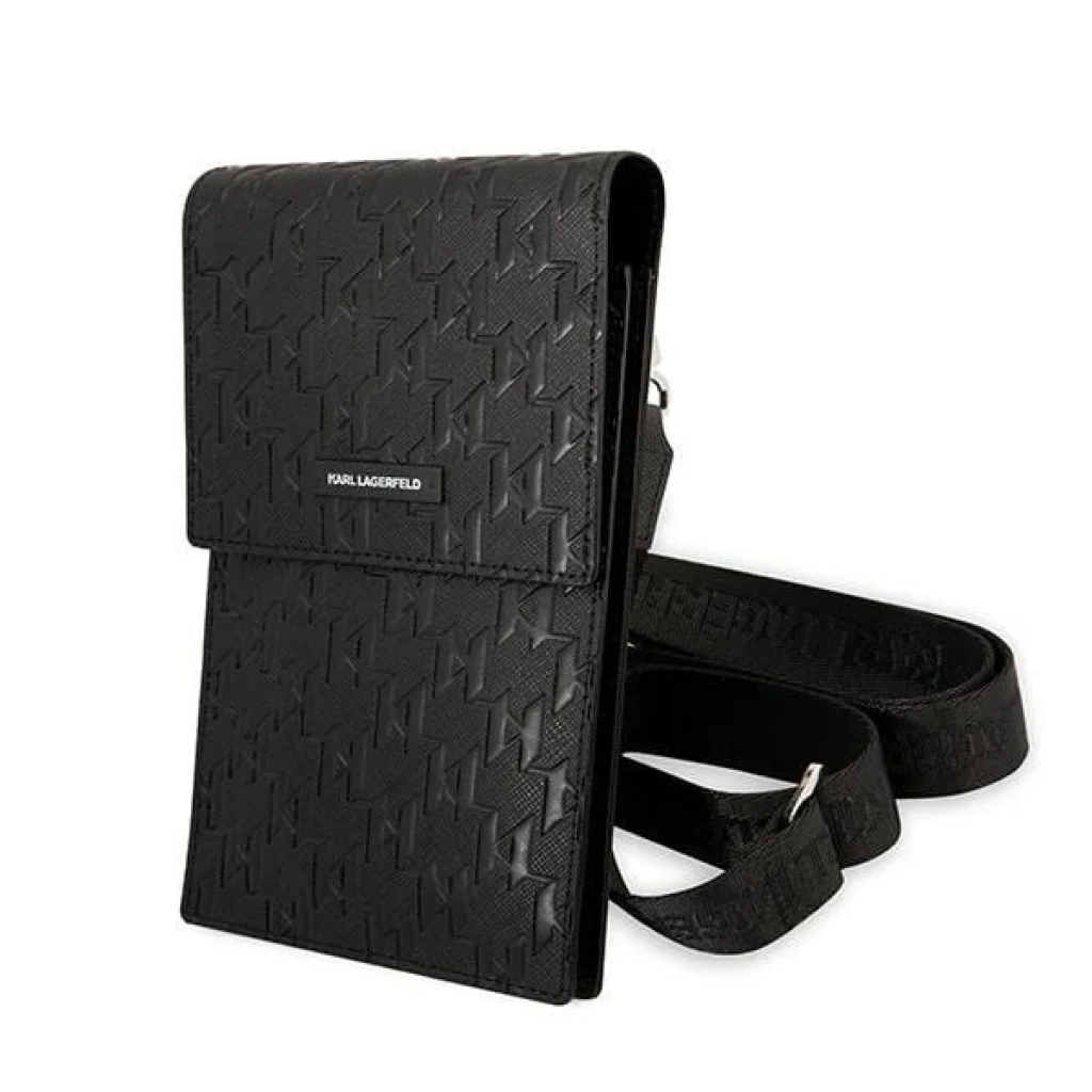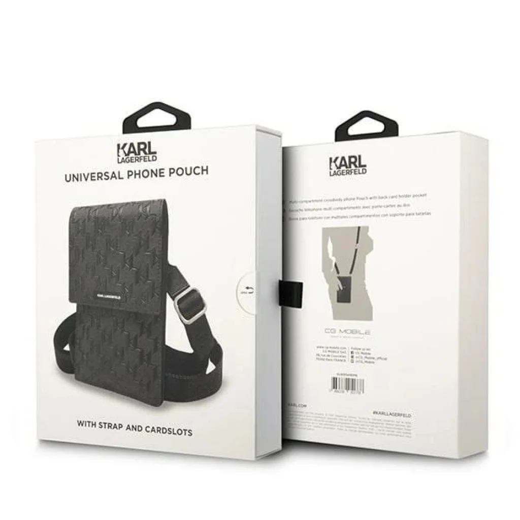 A táska levehető nylon vállpánttal, három kártya/dokumentumzsebbel és két telefontartó rekesszel rendelkezik. A felhasználó legnagyobb kényelme érdekében a táska mágneses csattal záródik. A termék Karl Lagerfeld engedélyével készült.