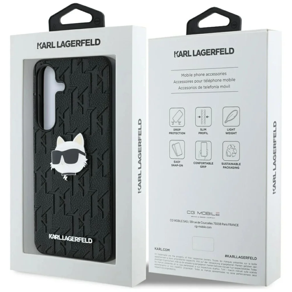Emeld ki kifinomultságodat ezzel a tokokkal, mely finoman préselt, a híres tervező kezdőbetűivel díszített motívumot tartalmaz. A kollekciót háromdimenziós fém jelvénnyel díszítették, amely a híres tervező kedvenc macskáját, Choupette-et ábrázolja. A jelvény a termék kiváló minőségének és hitelességének bizonyítéka.