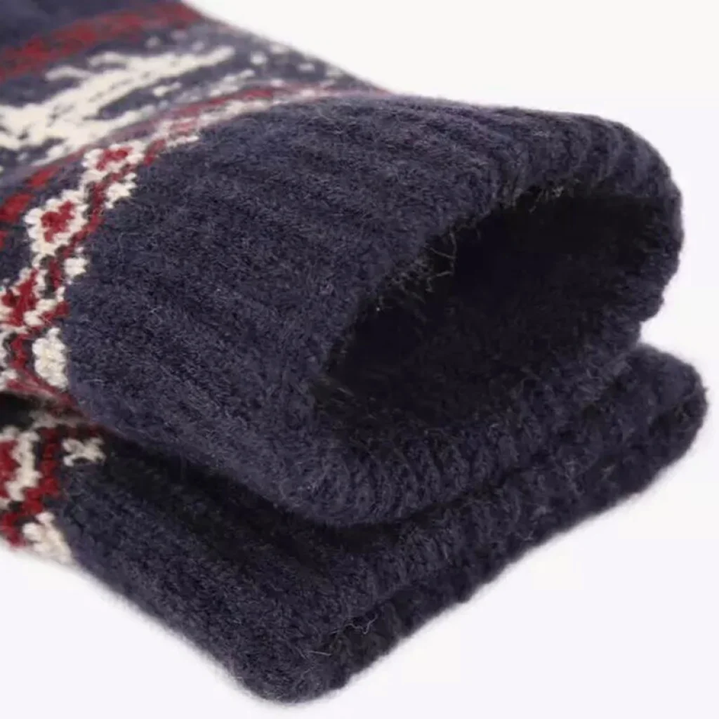 - Egyedi téli dizájn: A sötétkék alapanyagon fehér rénszarvas motívum, valamint a piros és fehér színű geometrikus minták varázsolnak ünnepi és stílusos megjelenést a kesztyűnek. Ez a klasszikus téli minta garantáltan feldobja öltözékedet.