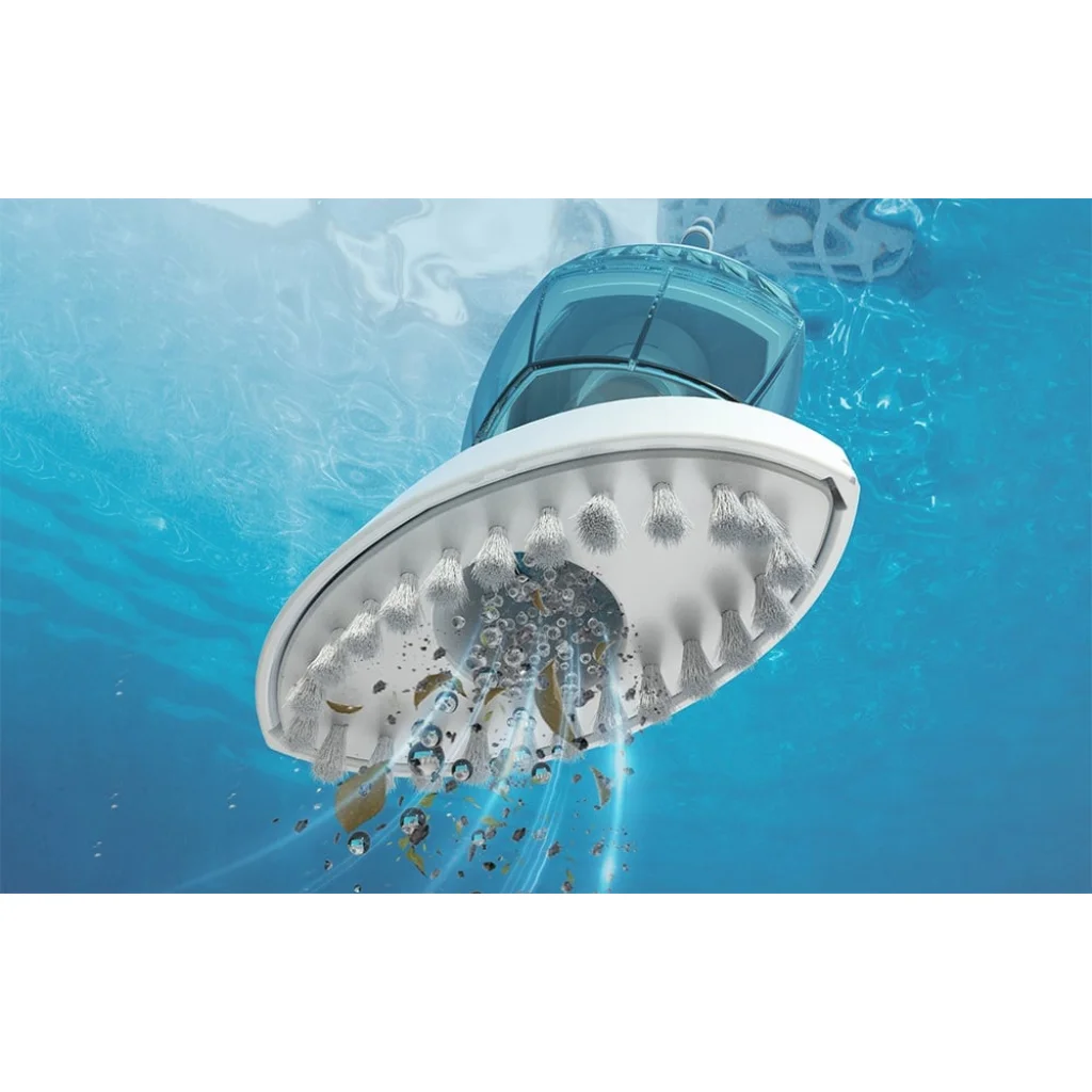 Hatékony szennyeződés eltávolítás: A Wybot Hyson100 hatékonyan megbirkózik a levelekkel, pollenekkel, iszappal, rovarokkal és makkokkal, alaposan megtisztítva a medence aljáról és faláról az üledéket, a speciális keféjének köszönhetően.