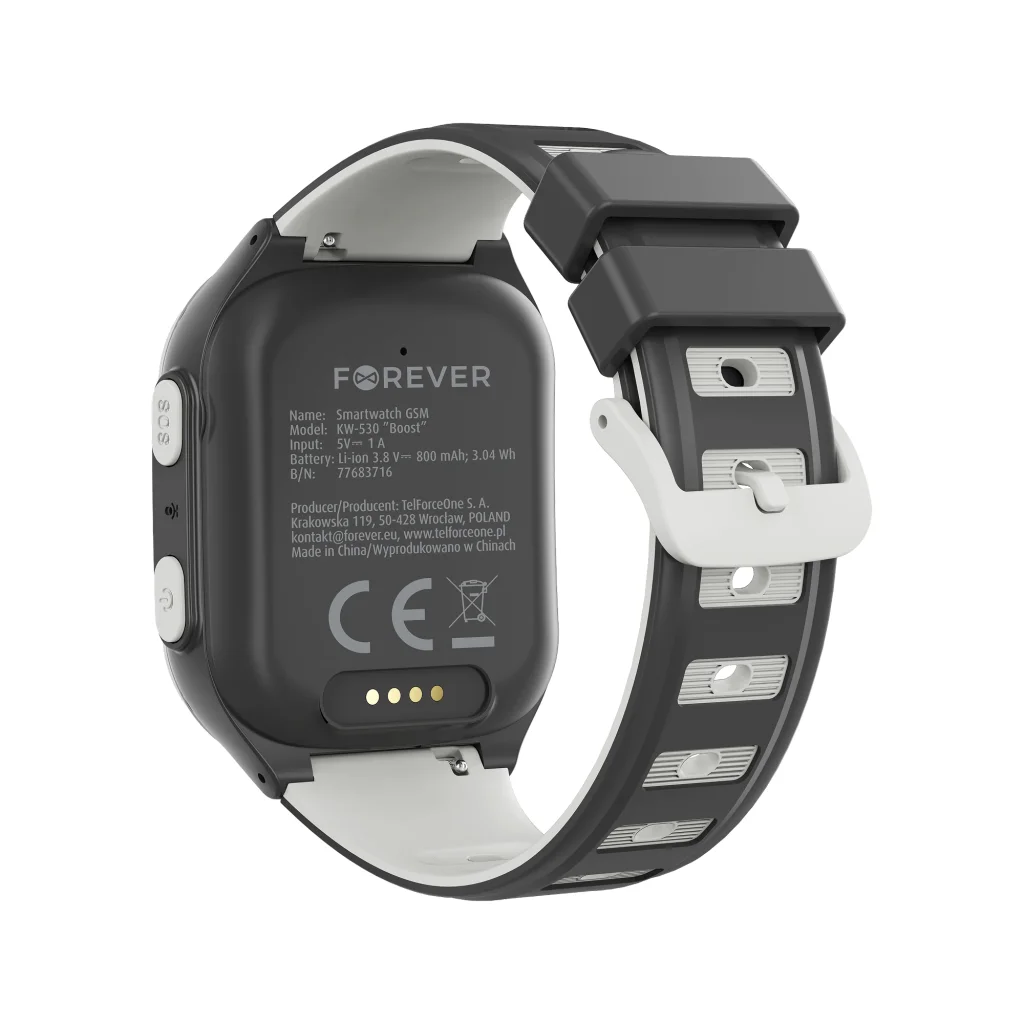 A Forever BOOST KW-530 emellett a csuklón elérhető szórakozás és tanulás központja. Az óra 2 MP-es kamerával rendelkezik fényképek készítésére és megosztására, játékokkal, számológéppel, valamint zene távoli vezérlésének lehetőségével. A gyermekek nyomon követhetik tevékenységüket, lépéseket számolhatnak, kalóriákat észlelhetnek, valamint hidratálási és mozgás emlékeztetőket kaphatnak.