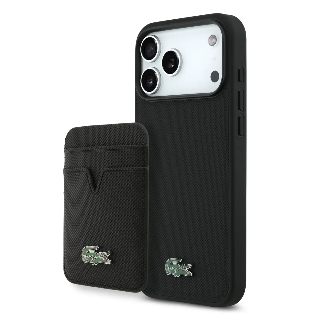 A Lacoste Iconic Petit Pique MagSafe hátlap és pénztárca iPhone-hoz egy stílusos szett, amely tökéletesen ötvözi a telefon védelmét, a praktikusságot és az eleganciát.