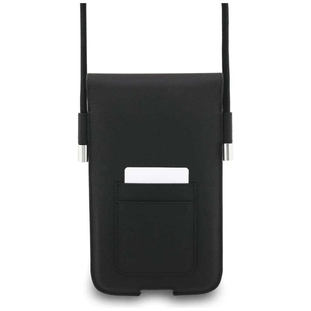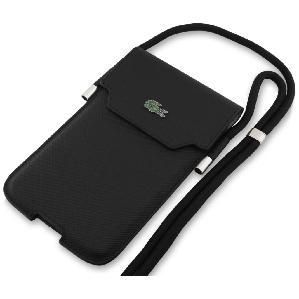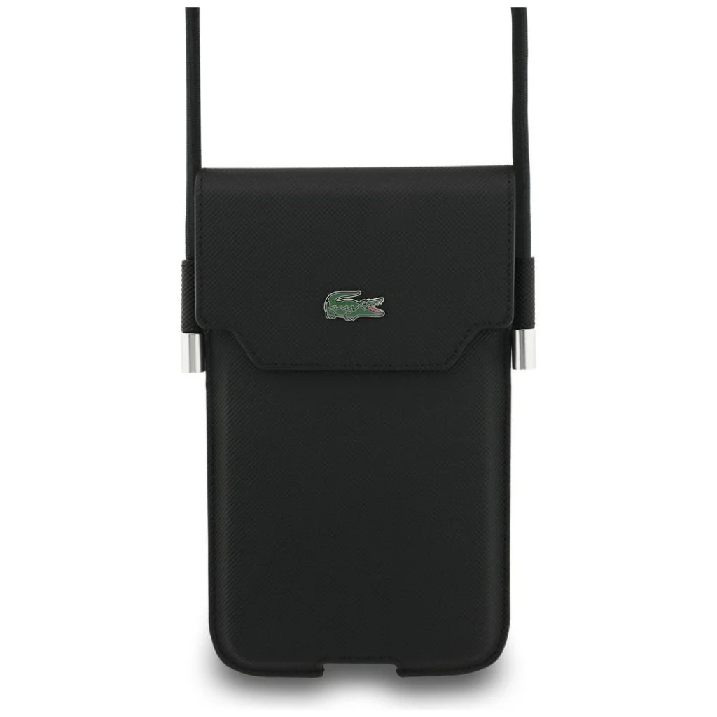 A Lacoste PVC Iconic Petit Pique Metal Logo Phone Pocket XL elég tágas ahhoz, hogy akár egy iPhone 17 Pro Max vagy Galaxy S25 Ultra méretű telefont, valamint más kisebb telefonmodelleket is elférjen benne.