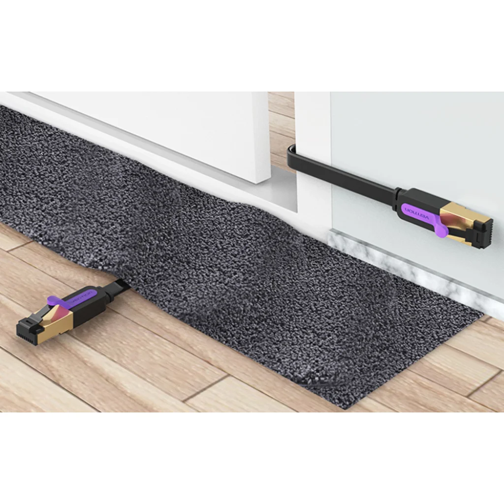 A Vention lapos UTP Cat 7 hálózati kábel (ICABK) 8 m hosszú. Most kényelmesen játszhatsz, tölthetsz le fájlokat, dolgozhatsz vagy nézhetsz filmeket. A Vention hálózati kábel legfeljebb 10 Gbps átviteli sebességet biztosít, így nem kell aggódnod késlekedés vagy egyéb jelproblémák miatt. A réz érintkezők és az alumínium fólia árnyékolás gyors és stabil átvitelről gondoskodnak, míg a lapos kialakítás és a mindössze 2,5 mm-es vastagság megkönnyítik a kábel telepítését. Könnyen elvezetheted ajtók alatt vagy falak mentén! A kábel széleskörű kompatibilitásával is kiemelkedik – tökéletesen működik számítógépekkel, laptopokkal, útválasztókkal és még sok más eszközzel.