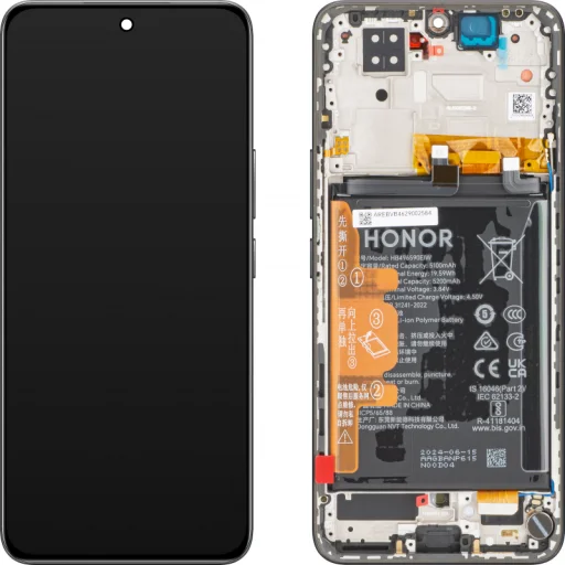 LCD Kijelző Modul Honor 200-hoz - Fekete. LCD Kijelző érintőképernyővel/digitizerrel és keret szerelvénnyel - eredeti szervízalkatrész. Ha a képernyőd repedt, megkarcolódott, halott pixelek, vonalak vagy vízkár jelentkezett, akkor ez a termék segít. Ezzel az egységgel kicserélheted a Honor 200 teljes elülső borítóját, beleértve a keretet, üveget, érintőképernyőt, LCD képernyőt, fülhallgatót és oldalsó gombokat.