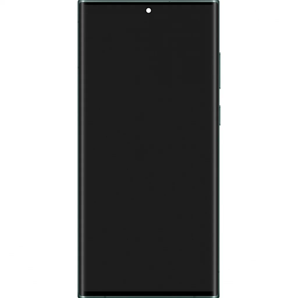 LCD kijelző modul Samsung Galaxy S22 Ultra 5G S908 - zöld. Eredeti pótalkatrész Samsung licenc alatt - eredeti szervizalkatrész. Kijelző kerettel/vázzal, oldalsó gombokkal és csengő/hangszóróval ellátva.