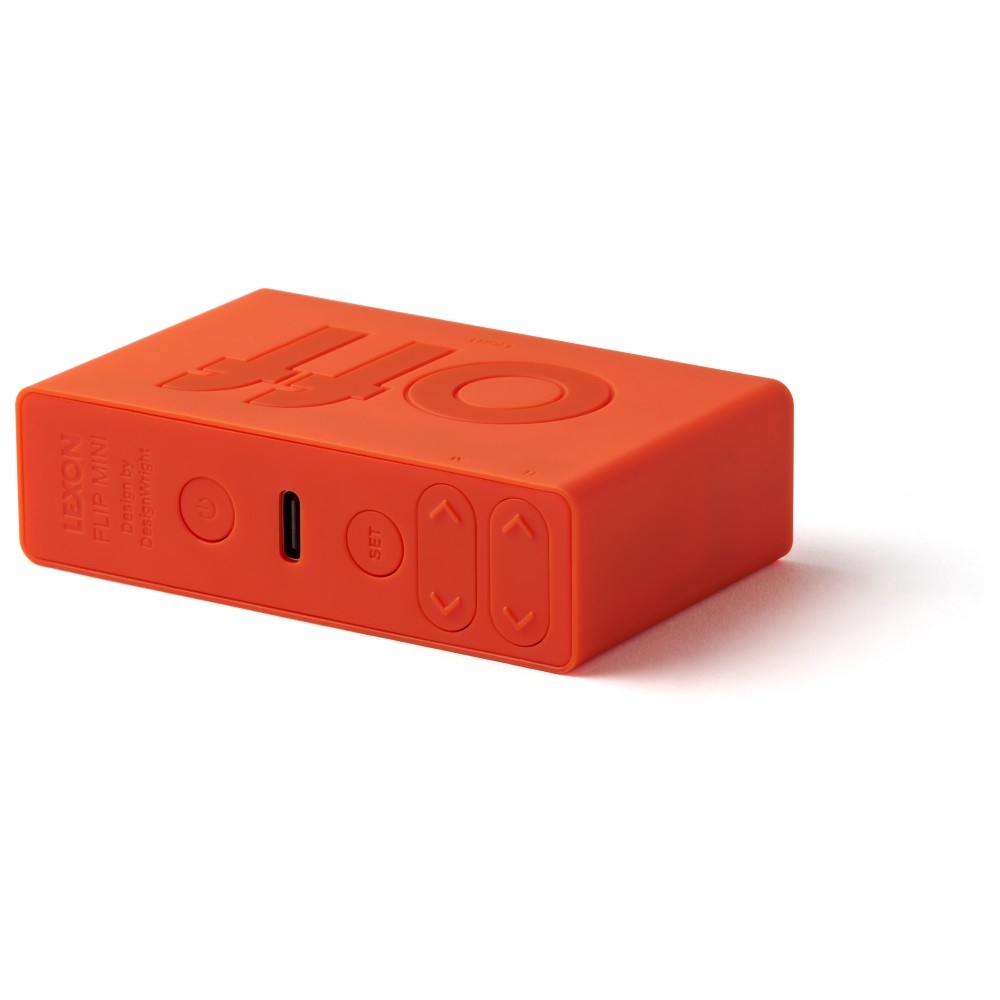 A Flip Mini kiemelkedik interaktív dizájnjával, amely két oldallal (ON / OFF) rendelkezik, hogy az ébresztőt aktiválja vagy kikapcsolja, ha megfordítja az eszközt. A beépített érzékelőnek köszönhetően egy gyengéd érintéssel megvilágíthatja az LCD kijelzőt. A diszkrét gombok a készülék hátoldalán lehetővé teszik az idő/dátum formátum, az ébresztő beállítások és a kijelző fényerejének könnyű beállítását, maximális kényelmet biztosítva a használat során.