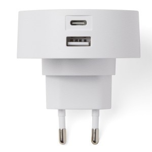 A stílusos Lexon Poweron fali töltő ideális megoldás két eszköz egyidejű töltésére. A Power Delivery (PD) funkcióval ellátott USB-C port lehetővé teszi okostelefonok, tabletek és laptopok gyors töltését. A kiegészítő USB-A port révén egy második eszköz töltése is lehetséges egyidejűleg. A PD funkció segítségével a Poweron akár 50%-os akkumulátor szintet is elérhet egy iPhone-on mindössze 30 perc alatt.