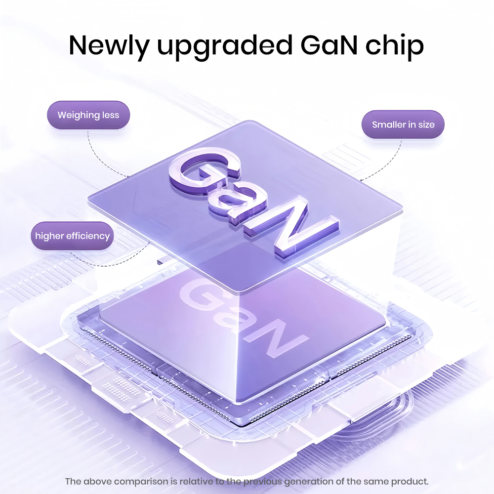 Az újonnan továbbfejlesztett GaN chip a modern töltéstechnológia alapja. Ez a Gallium Nitride alapú chip nemcsak kisebb méretet és alacsonyabb súlyt tesz lehetővé a töltő számára, hanem jelentősen növeli annak hatékonyságát is. Ennek eredménye egy erősebb, megbízhatóbb és energiatakarékosabb töltő, amely alacsonyabb hőmérsékleten működik.