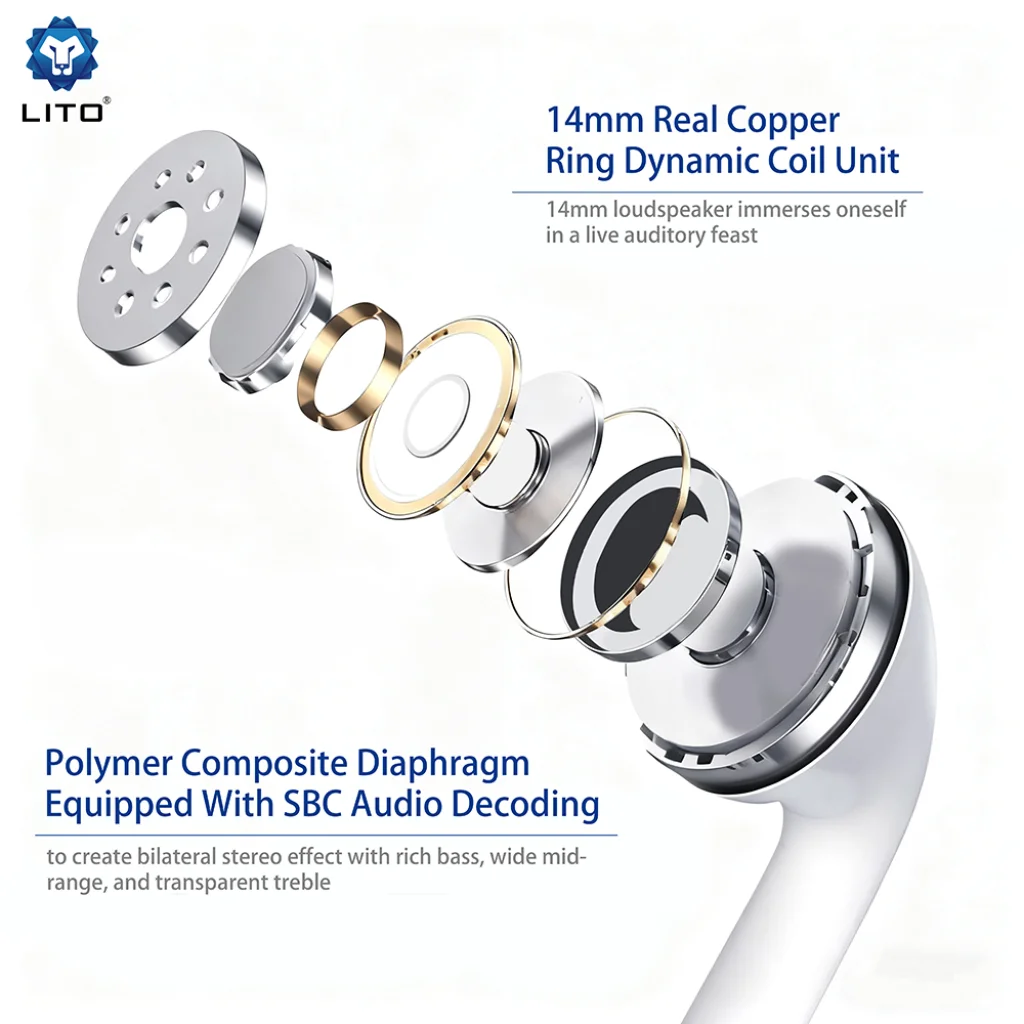 - 14mm-es valódi rézgyűrűs dinamikus tekercses egység: Merüljön el egy élő zenei élményben a mély basszustól a tiszta magas hangokig.