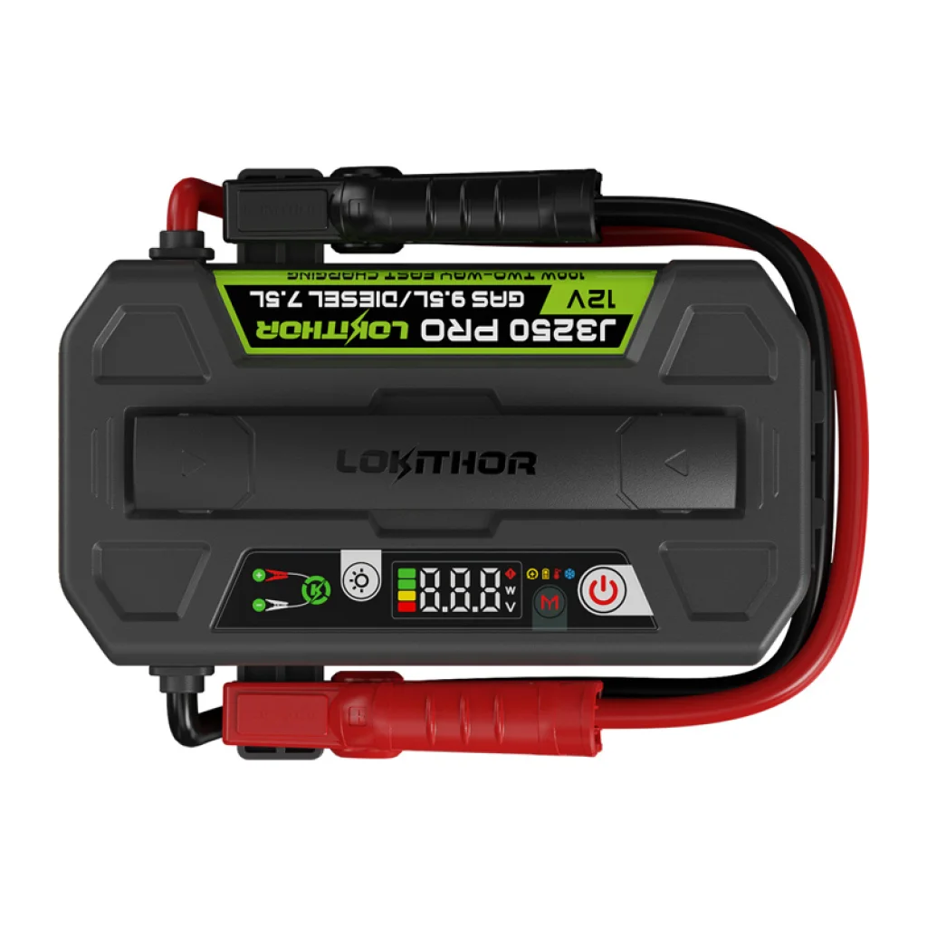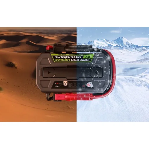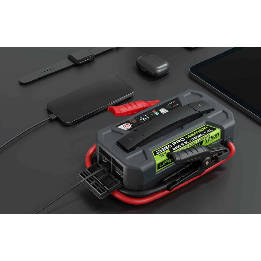 A LOKITHOR J3250 Pro egy nagy teljesítményű autós indítósegéd és power bank, amely 3250 A csúcsáramot biztosít. Kifejezetten legfeljebb 9,5 literes benzines és 7,5 literes dízelmotorok indítására tervezték. A készülék korszerű LiFePO4 (LFP) akkumulátort használ, amely 50%-os kisütés mellett több mint 8000 töltési ciklust kínál, így hosszú élettartamot és alacsonyabb üzemeltetési költséget biztosít. A modell az indítósegéd és a 100 W-os power bank funkcióját egyesíti, gyors, kétirányú töltéssel. A teljes feltöltés körülbelül 60 percet vesz igénybe. Strapabíró kialakítása, fejlett biztonsági megoldásai és zord körülmények közötti használhatósága ideálissá teszik mindennapi és vészhelyzeti használatra is.