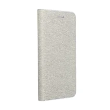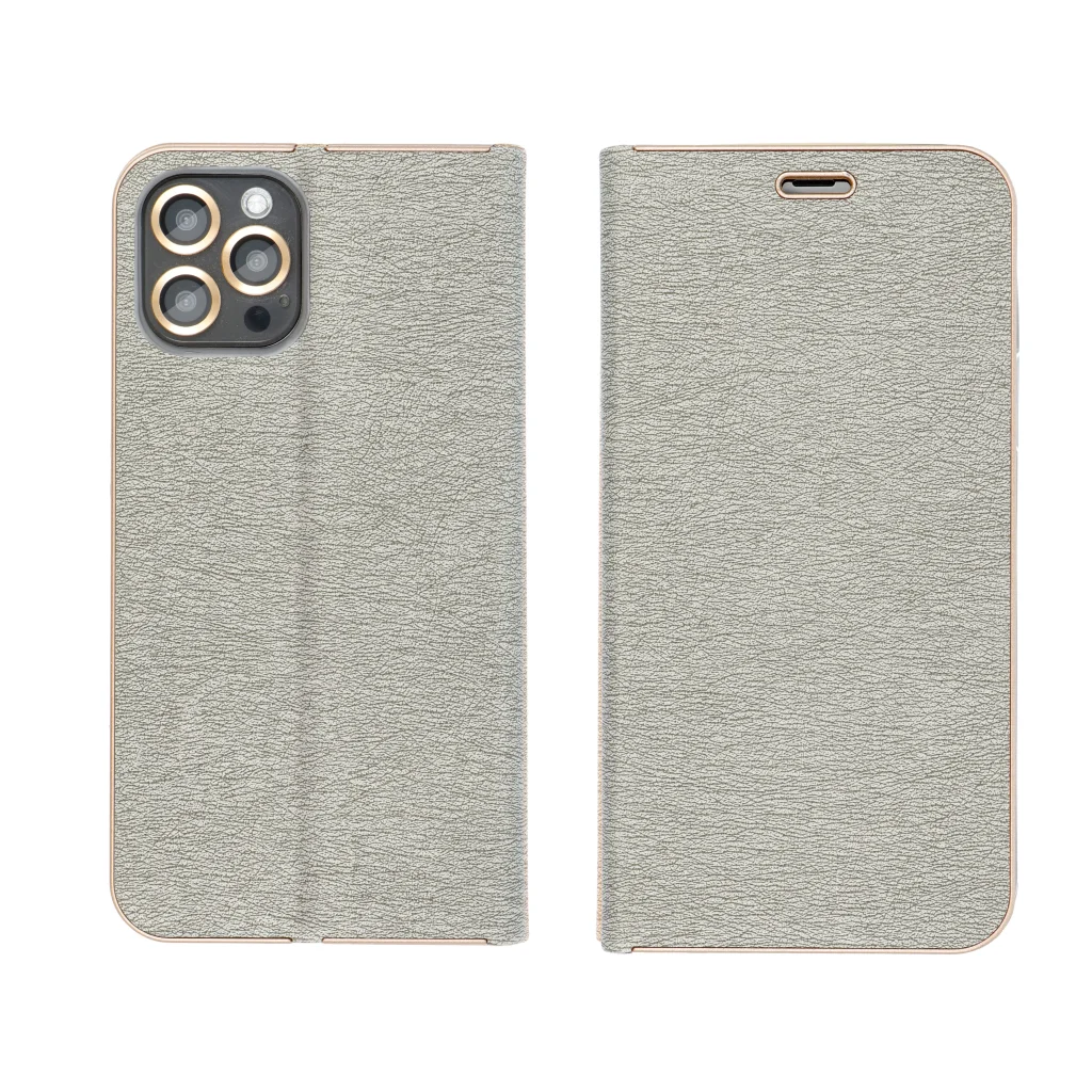 Elegáns tok fém kerettel a telefon fokozott védelme érdekében. A vonzó textúra és a kellemes tapintású anyag egy stílusos tokot hoz létre, amely kiemeli a készülék modern kialakítását. A puha velúr anyag a belsejében és a tartórészben védi a készüléket mindkét oldalról a sérülésektől és karcolódásoktól. A fogó rugalmas szilikonból készült és kivágásokkal rendelkezik. Az alumínium keret a széleken erősebbé teszi a tokot és még jobban védi a készüléket. A fém és az eredeti anyag kombinációja egyedi és modern kompozíciót hoz létre, amelynek köszönhetően a készülék stílusos és elegáns lesz. A tok kis zsebbel is rendelkezik a praktikus dokumentumok vagy bankjegyek tárolásához. A tok egy vízszintes alappal is fel van szerelve filmek vagy fotók nézéséhez. Az erős mágnes biztosítja a könnyű zárást és nyitást, valamint megakadályozza a véletlen kinyílást.
