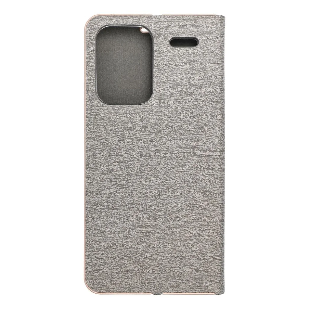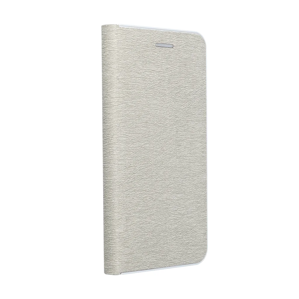 Elegáns tok fém kerettel a telefon fokozott védelméért. A vonzó textúra és a kellemes tapintású anyag stílusos fliptokot hoz létre, amely kiemeli a készülék modern dizájnját. A belső puha velúr anyag és a tartó rész megvédi a készüléket mindkét oldalról a sérülésektől és a karcolásoktól. A fogantyú rugalmas szilikonból készült és kivágásokkal rendelkezik. A széleken lévő alumínium keret még erősebbé teszi a tokot és tovább védi a készüléket. A fém és az eredeti anyag kombinálása egyedi és modern kompozíciót eredményez, aminek köszönhetően a készülék stílusos és elegáns megjelenést kap. A tok egy kis zsebbel is rendelkezik, amely kényelmes dokumentumok vagy bankjegyek tárolására alkalmas. A tok vízszintes alapra van szerkesztve filmek vagy fotók megtekintéséhez. Egy erős mágnes biztosítja a könnyű bezárást és nyitást, valamint megakadályozza a véletlenszerű kinyílást.