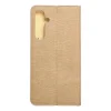 Elegáns tok fémes kerettel a telefon fokozott védelme érdekében. A vonzó textúra és a kellemes tapintású anyag stílusos tokot hoz létre, amely kiemeli a készülék modern dizájnját. A puha velúr anyag a belsejében és a tartó részben mindkét oldalról védi a készüléket a sérülésektől és karcolásoktól. A tartó rugalmas szilikonból készült és kivágásokkal rendelkezik. A széleken található alumínium keret erősebbé teszi a tokot, és még jobban védi a készüléket. A fém és az eredeti anyag kombinációja egyedülálló és modern kompozíciót teremt, amelynek köszönhetően a készülék stílusos és elegáns megjelenést kap. A tok egy kis zsebbel is rendelkezik hasznos dokumentumok vagy bankjegyek számára. A tok egy vízszintes állványból áll filmek vagy fényképek nézésére. Egy erős mágnes biztosítja a tok könnyű nyitását és zárását, valamint megakadályozza a véletlen kinyílást.