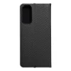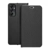 Elegáns tok fémes kerettel a telefon fokozott védelme érdekében. A vonzó textúra és a kellemes tapintású anyag stílusos tokot hoz létre, amely kihangsúlyozza a készülék modern dizájnját. A belső és a tartó részen lévő puha szarvasbőr anyag megvédi a készüléket mindkét oldaláról a sérülésektől és karcolásoktól. Az elasztikus szilikonból készült fogantyú kivágásokkal rendelkezik. Az alumínium keret a széleken még erősebbé teszi a tokot és még jobban védi a készüléket. A fém és az eredeti anyag ötvözése egyedi és modern kompozíciót hoz létre, amely stílusos és elegáns megjelenést biztosít a készüléknek. A tok egy kis zsebbel is rendelkezik a kézhez szükséges iratok vagy bankjegyek tárolásához. A tok vízszintes állványként is használható filmek vagy fotók nézéséhez. Egy erős mágnes biztosítja a könnyű zárását és nyitását, valamint megakadályozza a véletlen kinyílást.