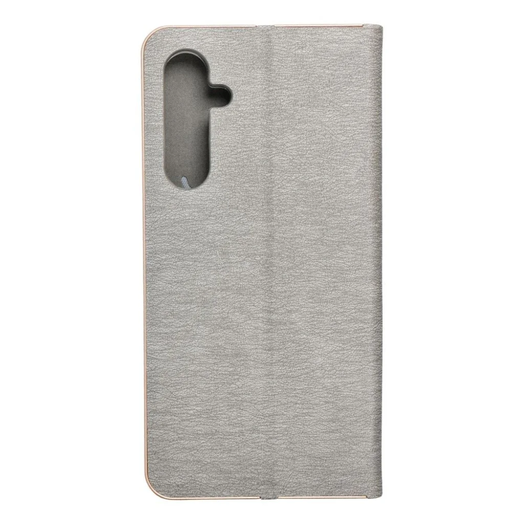 Elegáns fliptok fémes kerettel a fokozott telefonvédelemért. Az attraktív textúra és a kellemes tapintású anyag egy stílusos tokot hoz létre, amely kiemeli a készülék modern dizájnját. A puha velúr anyag belülről és a tartórészben is megvédi a készüléket a sérülésektől és a karcolásoktól mindkét oldalon. A fogantyú rugalmas szilikonból készült és kivágásokkal rendelkezik. Az alumínium keret a széleken erősebbé teszi a tokot, és még inkább védi a készüléket. A fém és az eredeti anyag kombinálása egyedi és modern kompozíciót eredményez, így a készülék stílusos és elegáns megjelenést nyer. A fliptok egy kis zsebbel is rendelkezik praktikus dokumentumok vagy bankjegyek számára. A tok vízszintes állványként is funkcionál filmek vagy fotók nézéséhez. Egy erős mágnes biztosítja a tok könnyű zárását és nyitását, valamint megakadályozza a véletlen kinyílást.