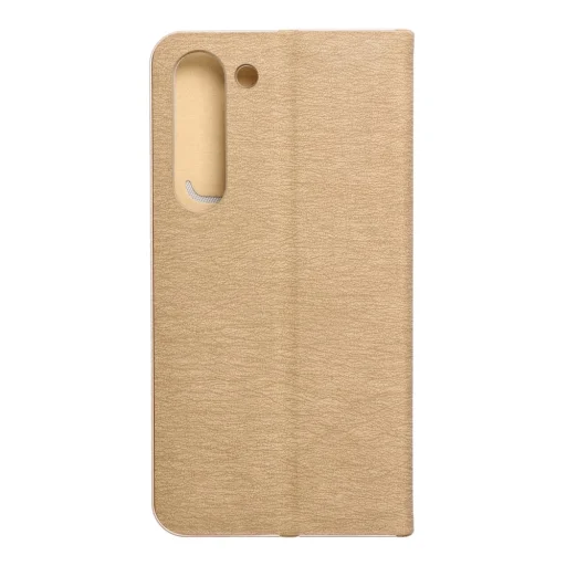 Elegáns tok fémes kerettel a telefon fokozott védelméért. A vonzó textúra és a kellemes tapintású anyag olyan stílusos tokot hoz létre, amely kiemeli a készülék modern dizájnját. Puha velúr anyag a belsejében és a tartó részén megvédi a készüléket mindkét oldalról a sérülésektől és karcolásoktól. A fogó rugalmas szilikonból készült és kivágásokkal rendelkezik. Az alumínium keret a széleken erősebbé teszi a tokot és még jobban védi a készüléket. A fém és az eredeti anyag kombinációja egyedi és modern kompozíciót hoz létre, amelytől a készülék stílusos és elegáns megjelenést kap. A tok egy kis zsebbel is rendelkezik, ahol kényelmesen elhelyezhetők dokumentumok vagy bankjegyek. A tok vízszintes alapot képez a filmek vagy fényképek megtekintéséhez. Az erős mágnes biztosítja a tok könnyű zárását és nyitását, valamint megakadályozza a véletlen kinyílást.