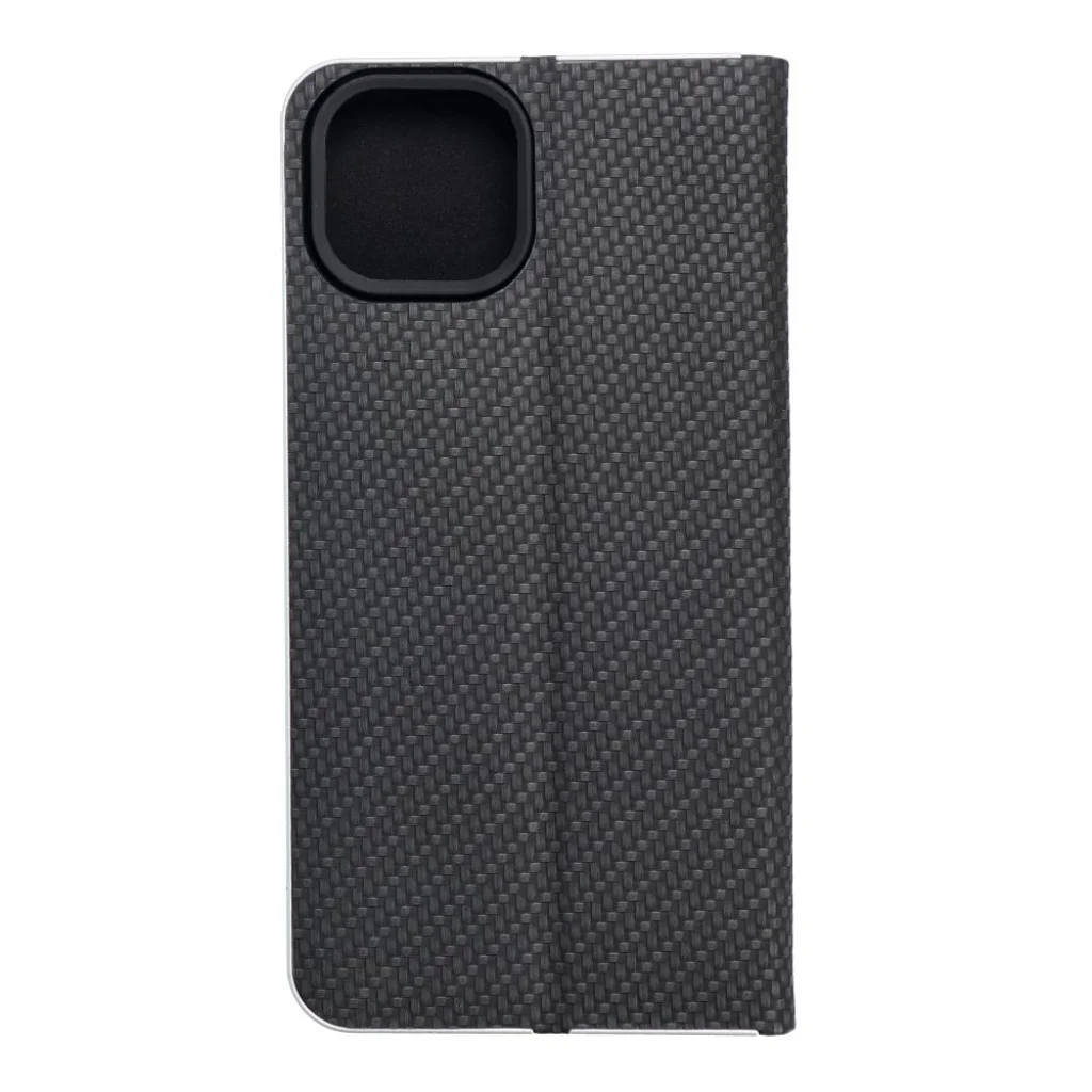 Elegáns tok fém kerettel a telefon fokozott védelme érdekében. A vonzó textúra és a kellemes tapintású anyag egy stílusos tokot hoz létre, amely kiemeli a készülék modern dizájnját. A belső és a tartó rész puha velúr anyaga megóvja a készüléket mindkét oldalról a károsodástól és karcolódástól. A tartórész rugalmas szilikonból készült, kivágásokkal. Az alumínium keret a széleken erősebbé teszi a tokot és még jobban védi a készüléket. A fém és az eredeti anyag kombinációja egyedi és modern kompozíciót teremt, amelynek köszönhetően a készülék stílusos és elegáns megjelenést kap. A tok egy kis zsebet is tartalmaz praktikus dokumentumok vagy bankjegyek számára. A tok vízszintes talp része filmek vagy fotók nézését teszi lehetővé. Egy erős mágnes biztosítja a tok könnyű zárását és nyitását, valamint megakadályozza a véletlen kinyílást.