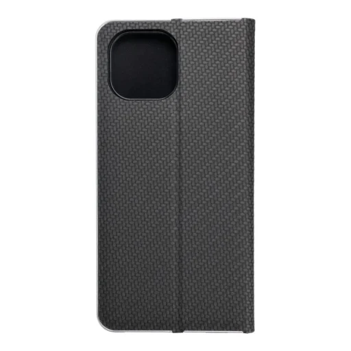 Elegáns tok fémes kerettel a telefon fokozott védelméért. A vonzó textúra és a kellemes tapintású anyag egy stílusos tokot hoz létre, amely kiemeli az eszköz modern dizájnját. A puha velúr anyag a belső és a tartó részen mindkét oldalról megvédi a készüléket a sérülésektől és karcolásoktól. A tartó rugalmas szilikonból készült és kivágásokkal rendelkezik. Az élek mentén elhelyezkedő alumínium keret erősebbé teszi a tokot, és még jobban védi a készüléket. A fém és az eredeti anyag kombinálása egy egyedi és modern kompozíciót hoz létre, aminek köszönhetően a készülék stílusos és elegáns megjelenést nyer. A tok egy kis zsebbel is rendelkezik hasznos iratok vagy bankjegyek számára. A tok vízszintes állványként is szolgál, ideális filmek vagy fényképek nézéséhez. Egy erős mágnes biztosítja a könnyű zárást és nyitást, és megakadályozza a véletlen kinyílást.