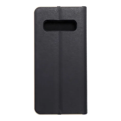 Elegáns tok fémes kerettel a telefon fokozott védelméért. A vonzó textúra és a kellemes tapintású anyag stílusos tokot hoz létre, amely kiemeli a készülék modern kialakítását. A puha velúr anyag belül és a tartórészben mindkét oldalról megvédi a készüléket a sérülésektől és karcolásoktól. A tartó rugalmas szilikonból készült, és kivágásokkal rendelkezik. A széleken található alumínium keret erősebbé teszi a tokot, és még jobban védi a készüléket. A fém és az eredeti anyag kombinálása egyedi és modern kompozíciót hoz létre, amelynek köszönhetően a készülék stílusos és elegáns megjelenést nyer. A tok egy kis zsebbel is rendelkezik kéznél lévő dokumentumok vagy bankjegyek tárolására. A tok vízszintes alappal rendelkezik filmek vagy fotók megtekintéséhez. Egy erős mágnes biztosítja a tartó könnyű zárását és nyitását, valamint megakadályozza annak véletlen kinyílását.
