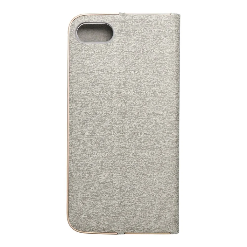 Elegáns tok fémes kerettel a fokozott telefonvédelem érdekében. A vonzó textúra és az érintésre kellemes anyag stílusos tokot hoz létre, amely kiemeli a készülék modern dizájnját. A puha velúr anyag belül és a tartó részen mindkét oldalról megvédi a készüléket a sérülésektől és karcolásoktól. A tartó rugalmas szilikonból készült, és kivágásokkal rendelkezik. Az alumínium keret a széleken erősebbé teszi a tokot és még jobban védi a készüléket. A fém és az eredeti anyag kombinációja egyedi és modern kompozíciót teremt, amelynek köszönhetően a készülék stílusos és elegáns megjelenést kap. A tok egy kis zsebbel is rendelkezik a praktikus dokumentumok vagy bankjegyek számára. A tok vízszintes alaplapként is működik, filmek vagy fotók nézéséhez. Az erős mágnes biztosítja a könnyű zárást és nyitást, valamint megakadályozza a véletlen kinyílást.