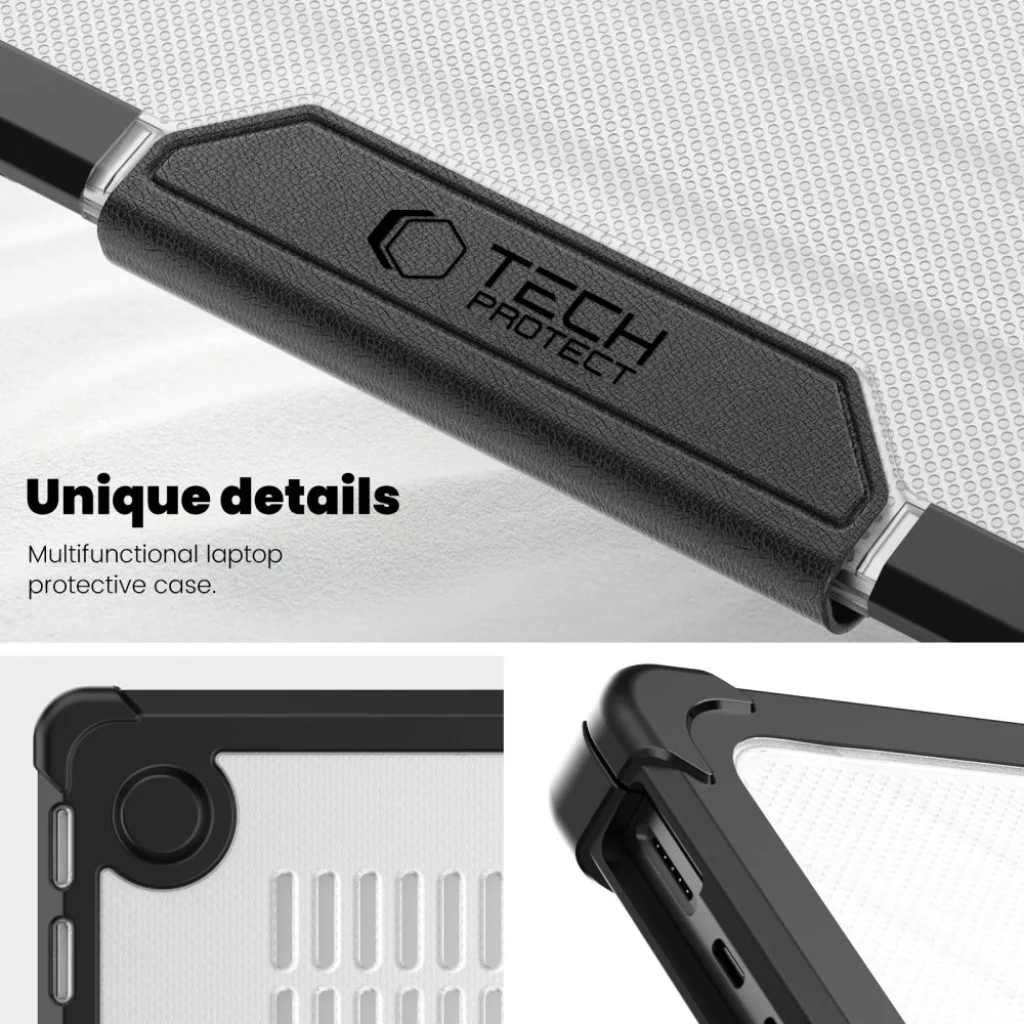 A Tech-Protect SmartShell Pro egy könnyű és rendkívül tartós megoldás, amely teljes védelmet nyújt az eszközödnek anélkül, hogy le kellene mondanod a stílusról és mobilitásról. Magas minőségű anyagokból készült, amelyek tartós védőkeretet, PU réteget és karcálló felületet kombinálnak, így hatékonyan védi MacBookodat a mechanikai sérülésektől. Beépített, összecsukható állvány lehetővé teszi a laptop ergonomikus beállítását, komfortot biztosítva a mindennapi munkavégzés során. A tok precíz kivágásokkal rendelkezik, amelyek teljes hozzáférést biztosítanak az eszköz összes portjához és funkciójához. A karcsú kialakítás könnyű hordozhatóságot biztosít, és kiválóan használható mind az irodában, mind utazás közben. A Tech-Protect SmartShell Pro az ideális védelem, kényelem és elegáns design kombinációja. A tok tökéletesen illeszkedik az Apple Macbook Pro 14 M1 / M2 / M3 / M4 / M5 2021-2025 modellekhez, a következő sorozatokkal: A2442, A2779, A2918, A2992, A3112, A3401, A3185, A3434. A modell számát a készüléked hátoldalán ellenőrizheted.