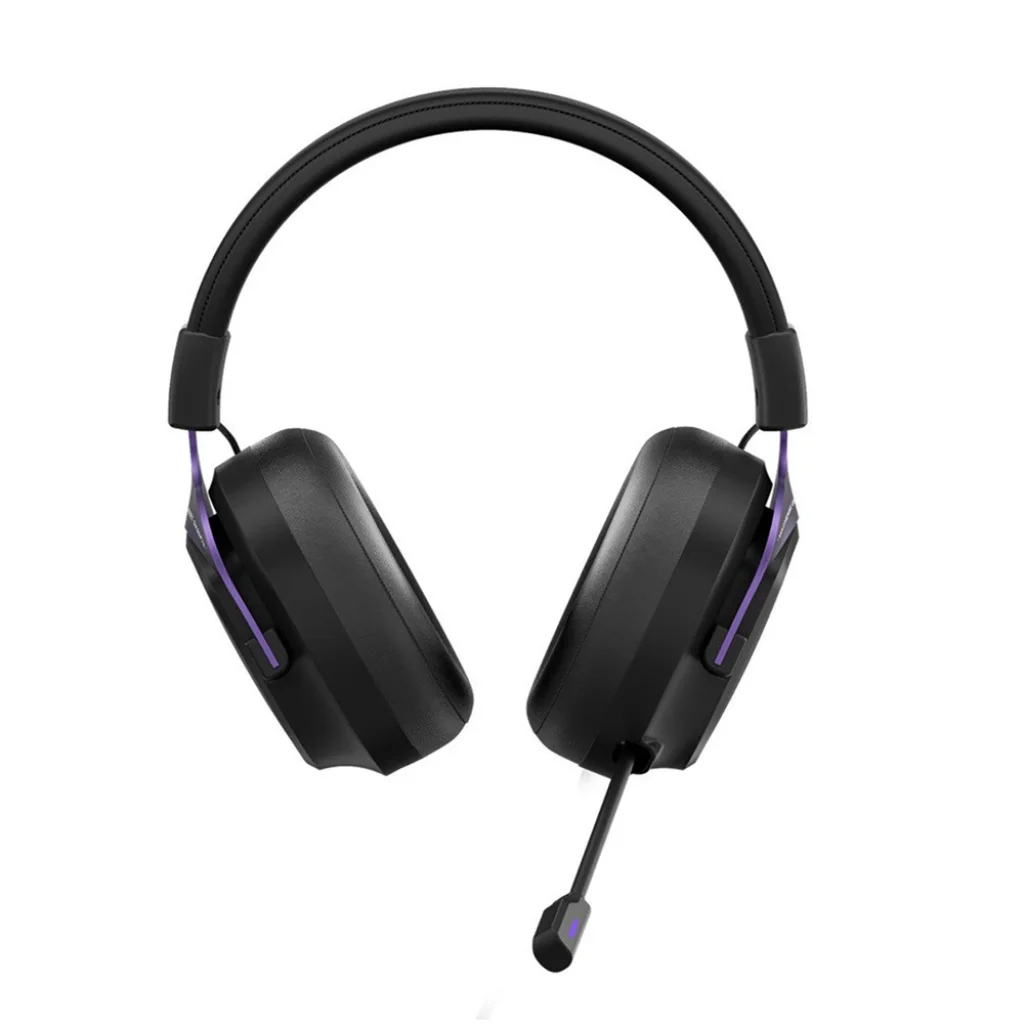 - Kényelmes és Stílusos Kialakítás: Ergonomikus over-ear dizájn, puha fülpárnák és a fej formájához igazodó, visszahúzható mikrofon beépített lila LED-del.