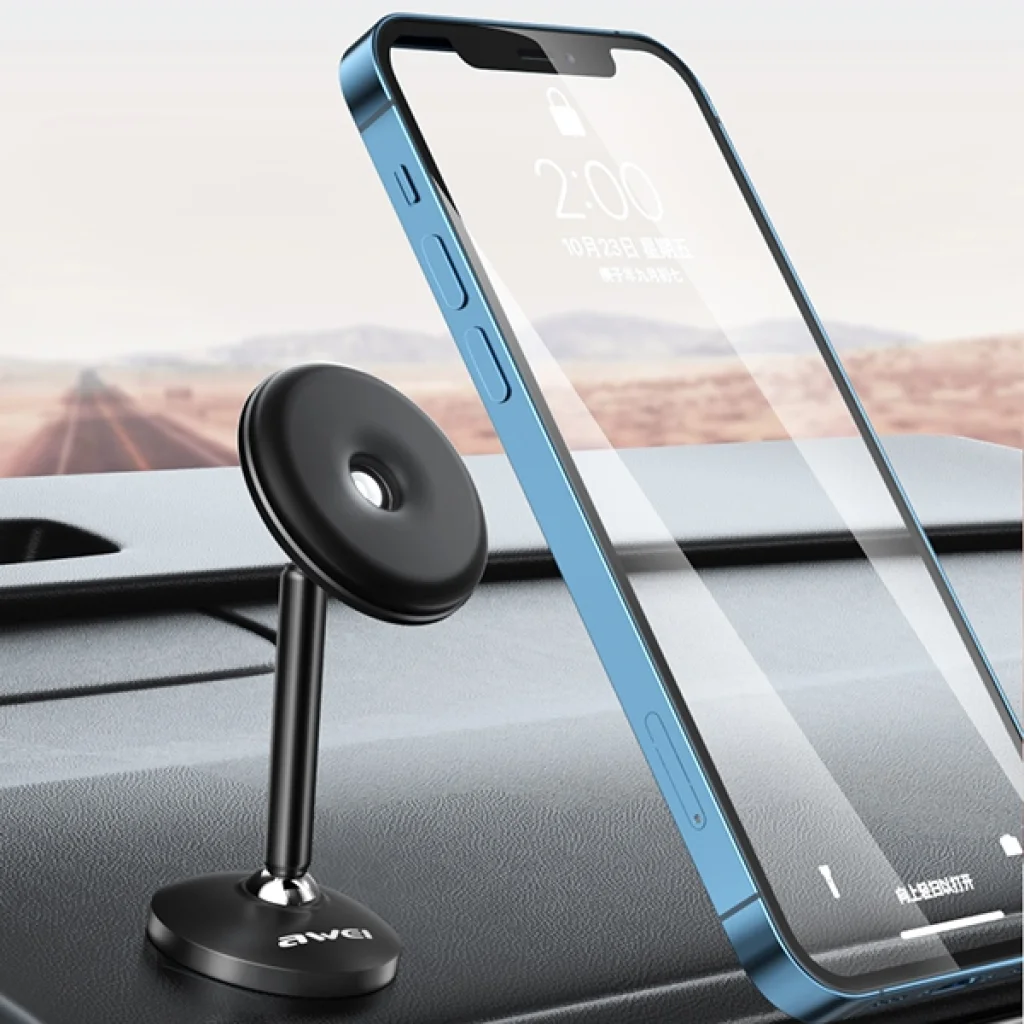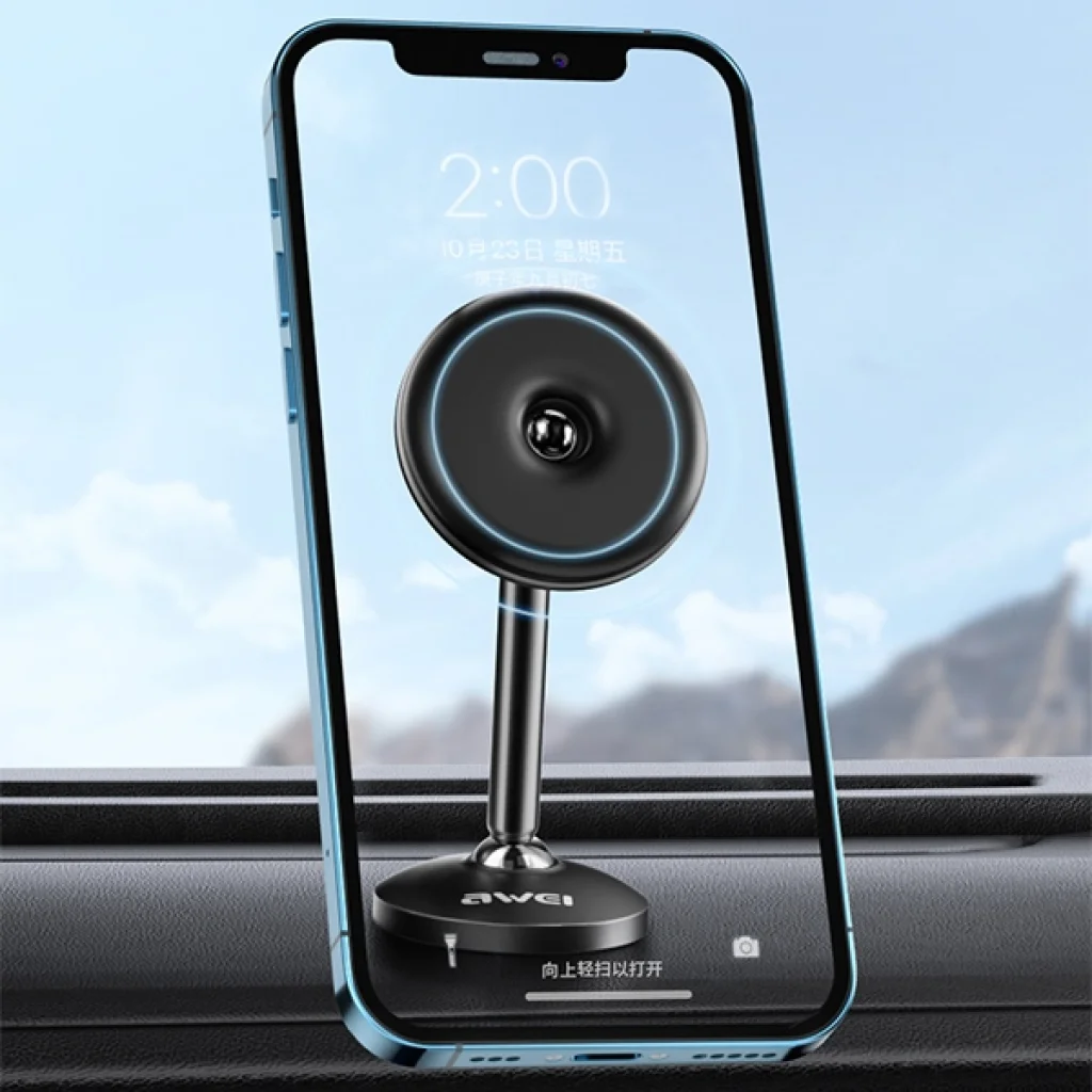 Az AWEI X22 egy mágneses autós tartó, amely biztonságosan és könnyedén rögzíti a mobiltelefonokat a jármű műszerfalára. Az erős neodímium mágneseknek köszönhetően a telefon stabil marad minden útfelületen. A tartó erős fogást biztosít, megszüntetve a veszélyt, hogy a telefon vezetés közben véletlenül leessen.