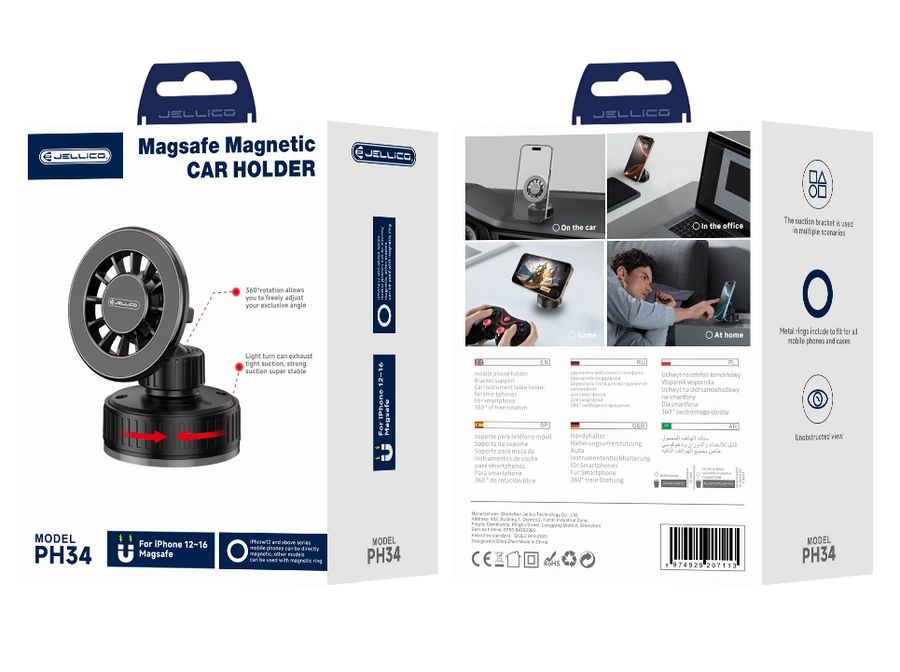 Mágneses autós telefontartó JELLICO PH34 Fekete
