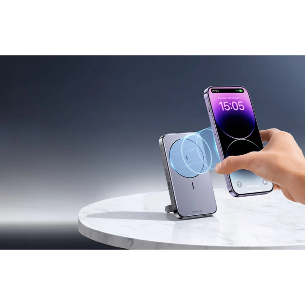 A UGREEN PB206 egy mágneses powerbank, amely tökéletes mind hosszabb utakra, mind mindennapi használatra. 10,000 mAh kapacitást kínál, és maximális teljesítménye eléri a 20 wattot. Kétféleképpen töltheti eszközeit – vezetékesen és vezeték nélkül, és a praktikus állvány még élvezetesebbé teszi a használatát.