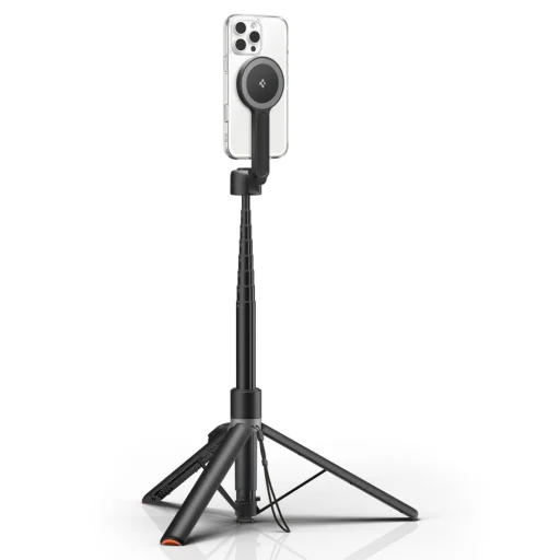 A Spigen S581W MagSafe selfie bot és állvány egy sokoldalú megoldás a pillanatok megörökítésére. A mágneses MagSafe rögzítés lehetővé teszi az iPhone vagy MagSafe tokkal felszerelt okostelefon azonnali rögzítését, biztos és stabil kapcsolódást nyújtva mindkét oldalról. A kompakt, összecsukható dizájn tartós alumíniumból készült, könnyen elfér a táskában vagy hátizsákban, így ideális útitárs minden utazáshoz.