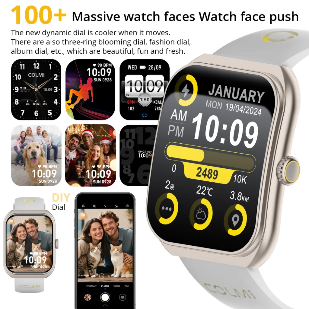 A Colmi P86 sokkal több, mint egy fitneszkövető. Bluetooth kapcsolaton keresztül kezdeményezhet és fogadhat hívásokat közvetlenül az órájáról, és valós időben szinkronizálja a telefonjáról érkező értesítéseket (SMS, közösségi média üzenetek). Az integrált AI hangasszisztens, zenelejátszó, számológép, ébresztő, stopper, távoli kamera vezérlés és beépített játékok tovább növelik a funkcionalitást, így az óra a mindennapok nélkülözhetetlen segítőjévé válik.