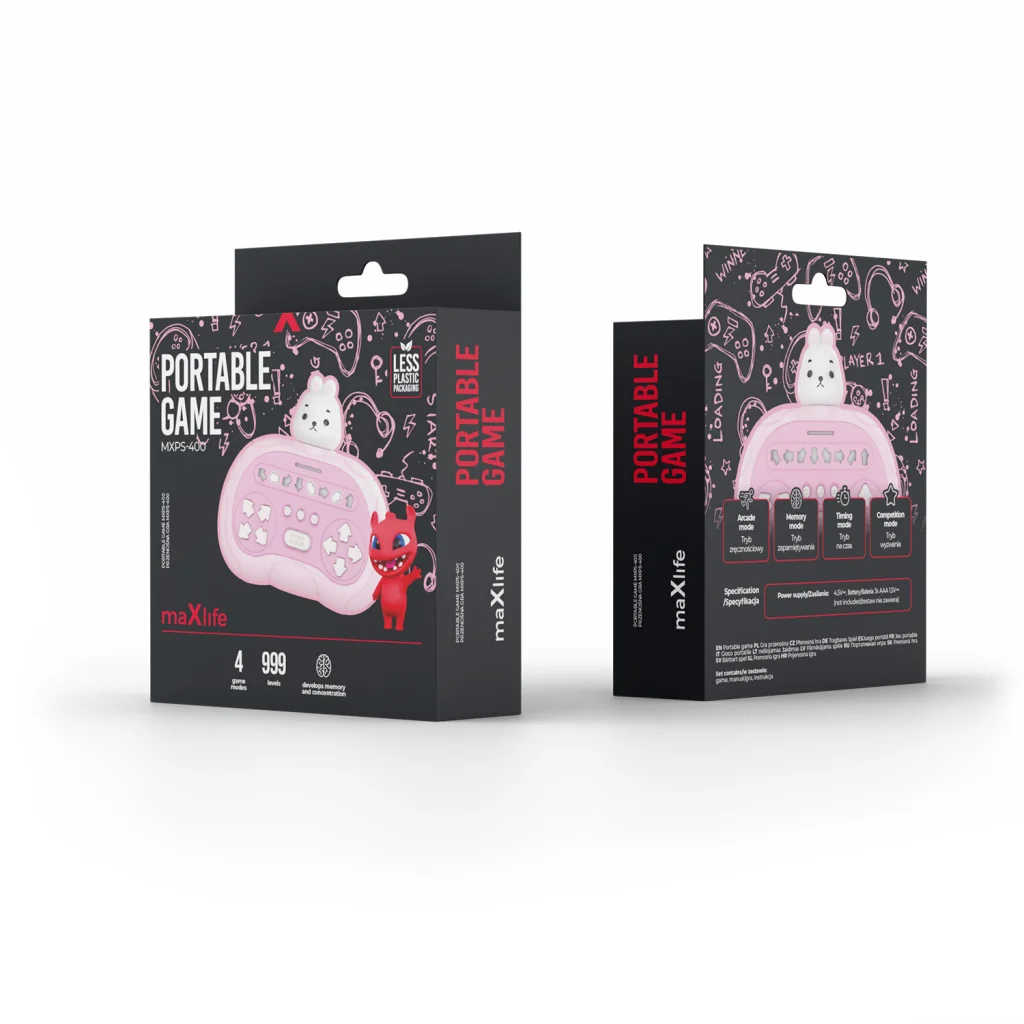 A Maxlife MXPS-400 egy kompakt ügyességi játék, amelyet aktív és fejlődési szórakozásra terveztek. Az eszköz támogatja a reflexeket, a koncentrációt és a kéz-szem koordinációt dinamikus játékmenet révén négy módban, eltérő nehézségi szintekkel. Praktikus kialakítása lehetővé teszi a játékot bárhol – otthon, útközben vagy szünetekben az iskolában.