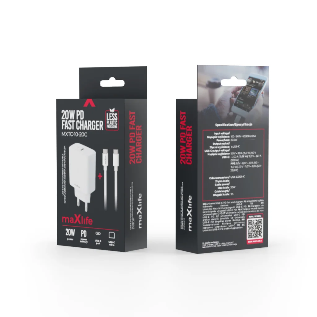 A Maxlife MXTC-10 20W egy kompakt töltő PD és QC+ technológiával.